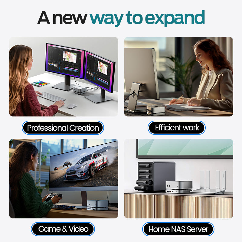 Transform your desk with the RayCue 3-in-1 design that functions as a hub, stand, and SSD enclosure. Save space and enhance your productivity without the need for multiple devices.*Each version has different speeds and ports. Please check carefully*