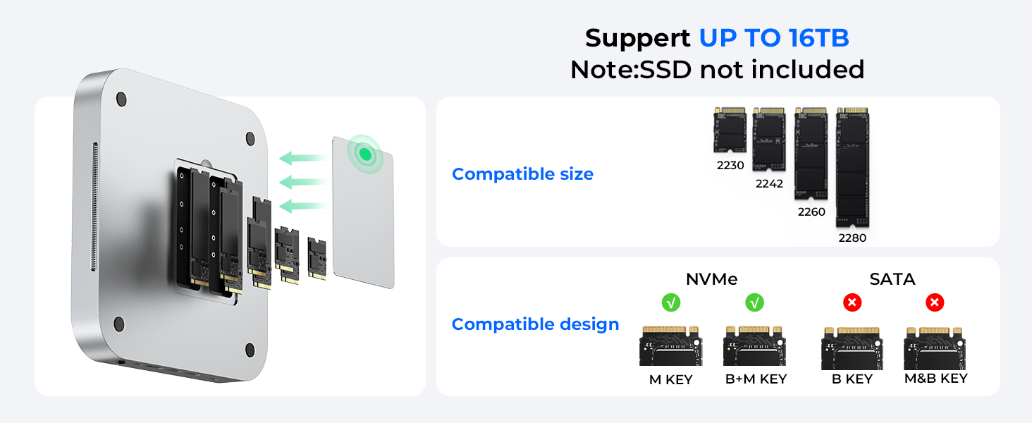 - Dual M.2 NVMe SSD Slots (Up to 16TB)