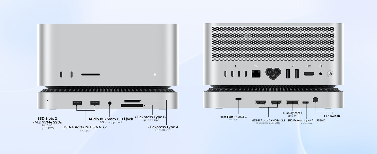 | SSD Slots | 2Ă M.2 NVMe SSDs (RAID 0/1, up to 16TB) |